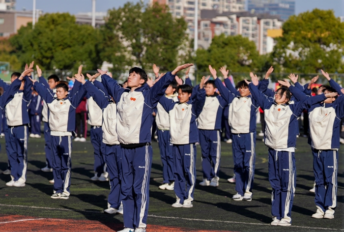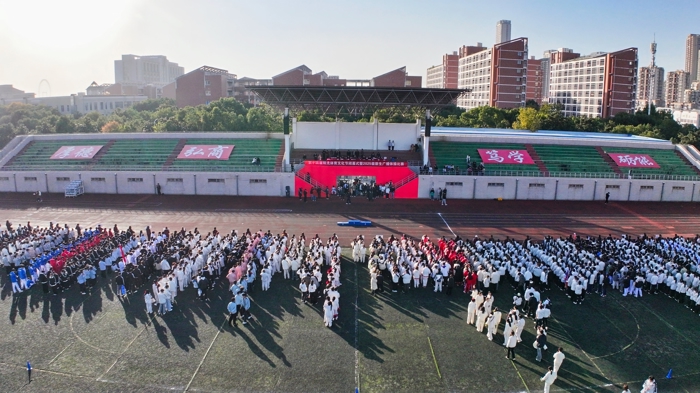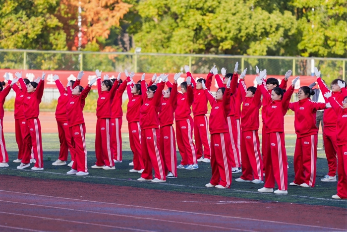 伴随着广播体操明快的节奏,同学们动作整齐规范、舒展流畅,从预备节到整理运动,每个环节都展现出力与美的完美结合。各班级在规范完成基本动作的同时,还创新融入了各具特色的队形变化,充分展示了新时代大学生团结协作、朝气蓬勃的青春风采。整齐的步伐、标准的手势、昂扬的姿态,赢得了现场观众的阵阵掌声。