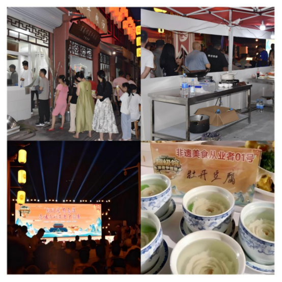 当晚共有二十九名选手同台竞技,他们分别来自夜市摊主、网红店主、民间吃货、老字号名厨和非遗美食从业者的五大组别。在限时比赛中,选手们现场烹制拿手菜品,一道道蕴含寿州历史风味的美食轮番登场:鲜香四溢的寿州圆子、酥脆可口的大救驾、醇厚浓郁的牛肉汤、外酥里嫩的瓦块鱼……灶火翻飞之间,匠人技艺与饮食文化交相辉映。特别引人注目的是非遗美食从业者张旭制作的“牡丹豆腐”。他在水中将豆腐精雕细琢成牡丹形态,以枸杞点缀花心,青菜衬托边缘,红白绿三色相映成趣。这道菜以精湛的刀工和创意造型赢得满堂喝彩,最终以9.85分成为全场最高分作品。经过激烈角逐,组委会从五大组别中各选出一名得分最高者,为其颁发“晋级证书”,并授予“超级皖”寿县古城战队战旗,选手将代表寿县继续参加淮南市级的比赛。这次赛事不仅是一次厨艺比拼,更是对寿州千年饮食文化的深度挖掘和现代诠释,作为中国豆腐的发源地和国家级历史文化名城,寿县依托深厚文化底蕴,通过竞技形式呈现出传统与创新并存的餐饮图景,进一步提升了寿州文化的知名度和影响力。