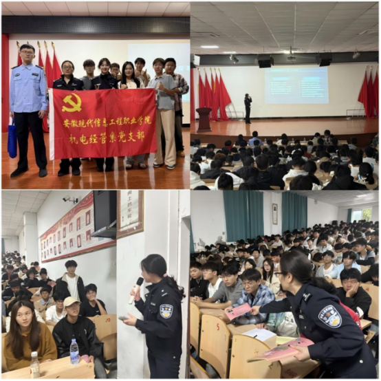 为切实提高师生防范电信网络诈骗的意识和能力,筑牢校园安全防线。近日,机电经管系党支部以党建为引领,联合辖区派出所共同开展“党建引领筑防线,反诈宣传进校园”主题活动。并于10月15日下午在校多功能厅开展“守好钱袋子,做好安信人”主题讲座。