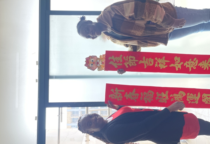 当天,师生们给学生公寓贴上春联和“福”字,挂上年味十足的中国结和象征着“中国龙”的各种装饰品,彼此送上诚挚的新年祝福。来自摩洛哥的留学生康瑞达是第一次在中国庆祝春节,他表示非常喜欢中国文化,很开心和老师们一起装饰校园、拍摄贺岁视频等,有机会实地感受中国春节的喜庆氛围。他也希望留学安医期间能体验更多的中华优秀传统文化,以后成为一名优秀的医生和中国文化的国际传播使者。