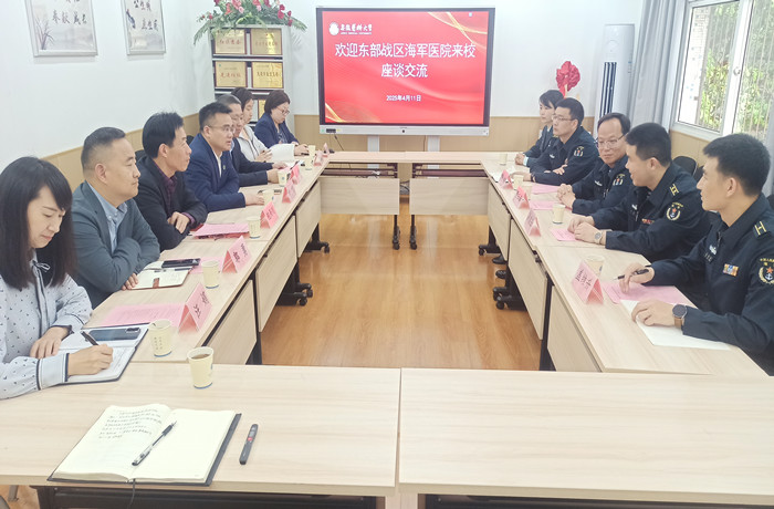 4月11日,东部战区海军医院来校,围绕人才共育开展座谈交流,并举办专场招聘宣讲活动。东部战区海军保障部政治工作处处长原三岗、我校学术副校长张智出席座谈会。