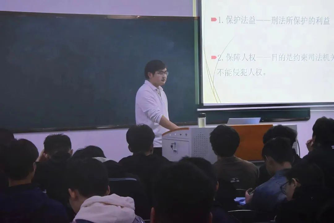 为进一步加强校园法治教育工作,提高在校学生法治观念和自我保护意识,安徽师范大学法律硕士、安徽扬子职业技术学院思政教师陈鹏于11月9日19:00,在我校高远楼404教室开展了法治育人系列讲座第一期:《正当防卫——以昆山龙哥案为例》,为2023级汽车工程学院学生讲授了一场精彩的法治教育课。