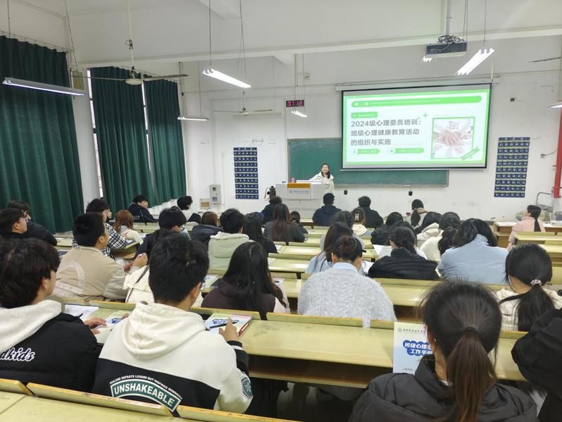 为提升心理委员的专业素养,强化班级心理健康教育活动实效,3月14日下午,学生处在至专楼举办2024级新任心理委员业务培训,本次培训主题为“班级心理健康教育活动的组织与实施”,由大学生心理健康教育中心专职教师主讲,共90余名心理委员参加。