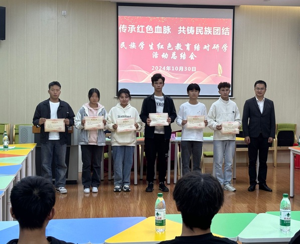 为深入学习贯彻党的二十届三中全会精神,弘扬革命文化,深化爱国主义教育,铸牢中华民族共同体意识,增强各民族学生团结凝聚力,近日学生处开展了以“传承红色血脉,共铸民族团结”为主题的民族学生红色教育结对研学活动。本次研学活动由2024级40名各民族学生结对参加,并以专题团课的形式开展。