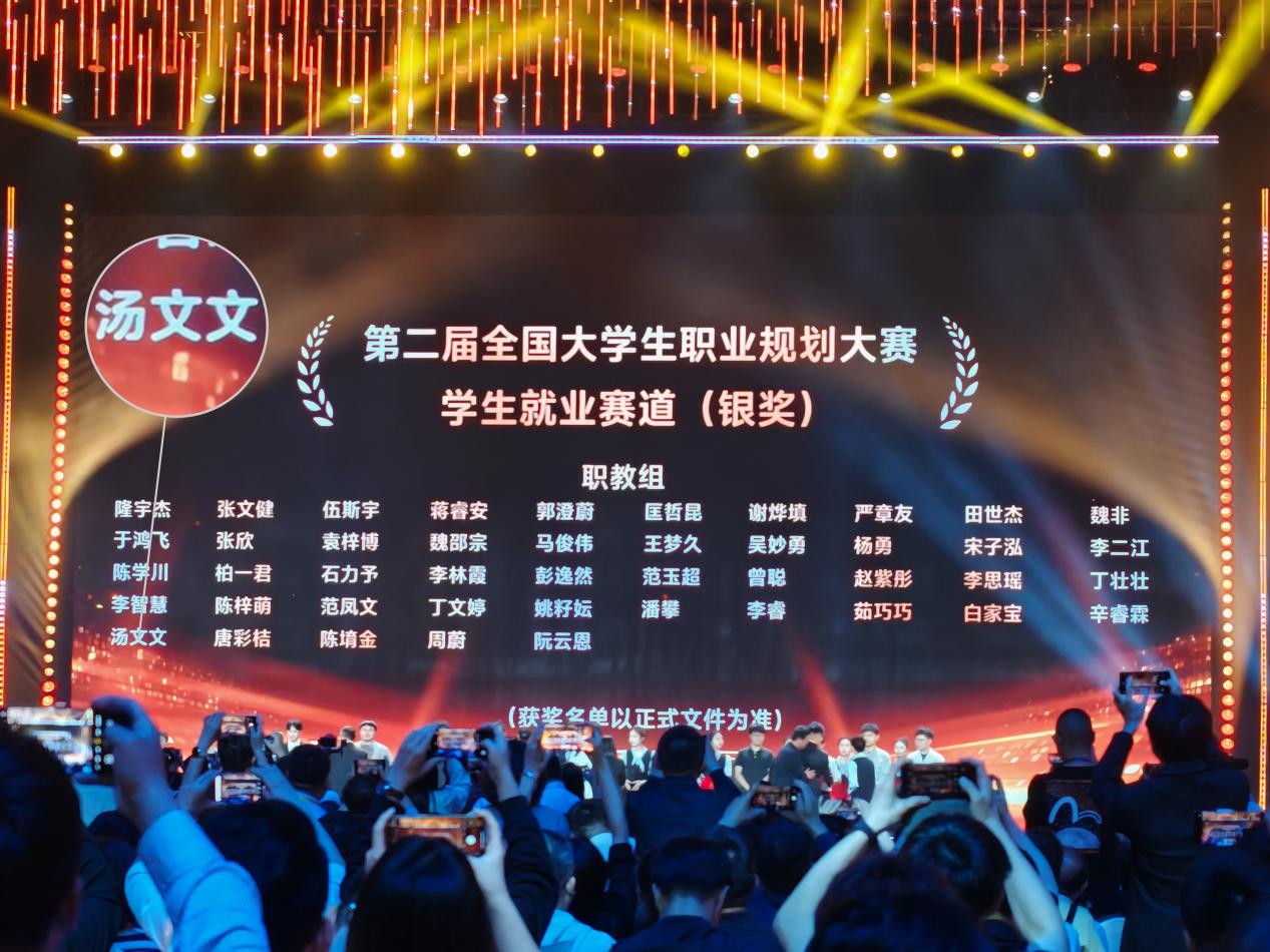 4月16日至19日,第二届全国大学生职业规划大赛全国总决赛在湖南省长沙市成功举办,本届大赛由教育部、湖南省人民政府共同主办,中南大学、湖南大学、湖南师范大学三所高校承办。比赛采用校赛、省赛、全国总决赛三级赛制,面向中低年级学生设成长赛道,面向高年级学生设就业赛道。大赛累计报名学生1507万人,覆盖高校2763所,共计750余名大学生晋级全国总决赛。我院轨道交通学院学生杨凯、艺术与创意学院学生汤文文入围国赛,经过激烈角逐,分别斩获职教组就业赛道银奖和职教组成长赛道银奖。