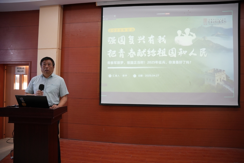 为响应国家征兵号召,鼓励广大青年学子投身军旅,报效祖国,4月27日,艺术与创意学院在博学楼附属楼2楼举办了2025年大学生征兵政策宣讲会。学院党总支书记李仿民、全体专职辅导员、22,23级学院全体男生及部分学生家长通过线上线下的方式参会,会议现场气氛热烈。