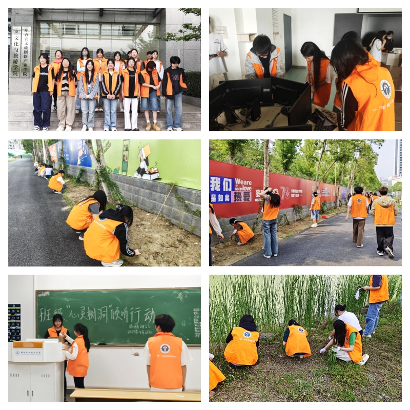 校园内,一旅阳光青年志愿者的身影绘就动人风景。教学楼窗明几净,是旅游2323班学生俯身擦拭的成果;实训室内器具锃亮,酒店专业学子用专业素养诠释劳动之美;一站式社区里,文秘2321班、文创2322班学生整理的不仅是空间,更是同窗的归属感。最具温度的当属旅游2422班的“心灵树洞”行动,匿名“解忧盲盒”中流转着暖心纸条:“你并非孤岛,我们共担风雨”——简单的字句成为照亮心灵的微光。