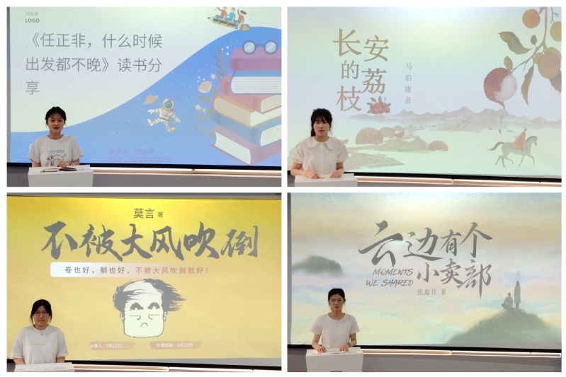随后,学生党员刘钰和入党积极分子余淑婷、徐源缘、安佳帅四位同学分享了《什么时候出发都不晚》《长安的荔枝》《不被大风吹倒》《云边有个小卖部》四本书籍,分享阅读感悟和收获,从励志故事中汲取行动力,或在历史镜像中反思职场逻辑,或于乡土叙事中重拾情感温度,或在逆境书写中感悟坚韧真谛。