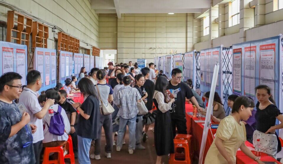 6月12日,学校在体育馆田径馆举办“百日冲刺促就业”2023届毕业生圆梦双选会,来自江苏、上海、安徽等地的109家单位受邀前来,为学生们提供了近7000个工作岗位。