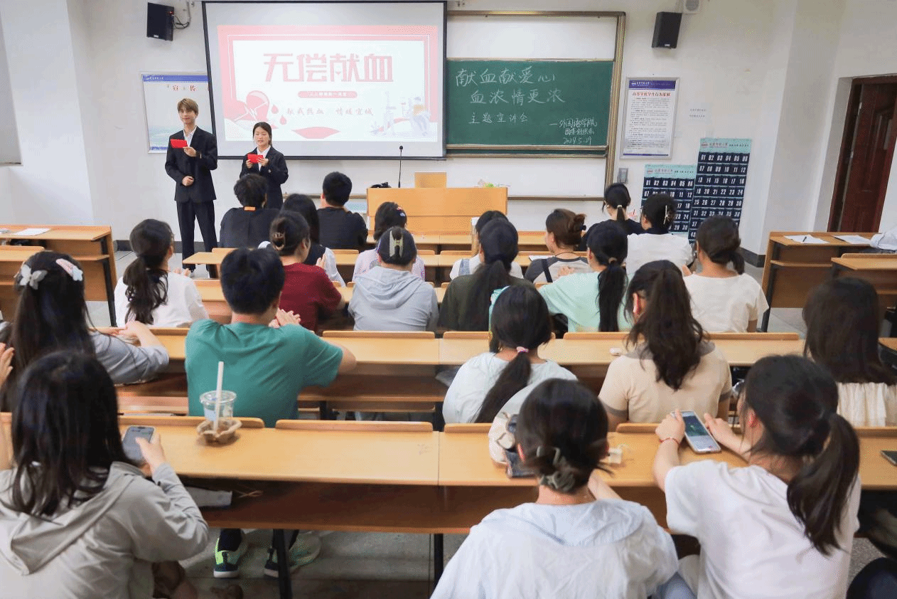 5月29日,外国语学院在E314教室开展“献血献爱心,血浓情更浓”主题宣讲活动,学院近百名学生代表到会聆听。