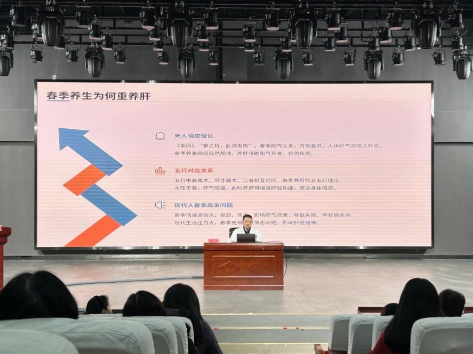 3月3日下午,传媒学院报告厅内,一场主题为“春季养肝与情志调理——中医防治甲状腺结节”的健康讲座在此举行。安庆市中医医院内分泌科主任沈伟结合中医经典理论,深入浅出地讲解了情志与肝脏的密切关系。他指出:“肝为‘女子先天’,肝气郁结易诱发甲状腺结节。女性教师群体因长期压力大,更需注重春季养肝,通过调节情志、合理膳食及中医外治法维护健康。”讲座中,沈主任还分享了中医防治甲状腺结节的特色方案,如疏肝理气的柴胡疏肝散、滋阴降火的知柏地黄丸,以及穴位贴敷、耳穴压豆等外治技术,强调中医药“辨证施治、标本兼治”的独特优势。
