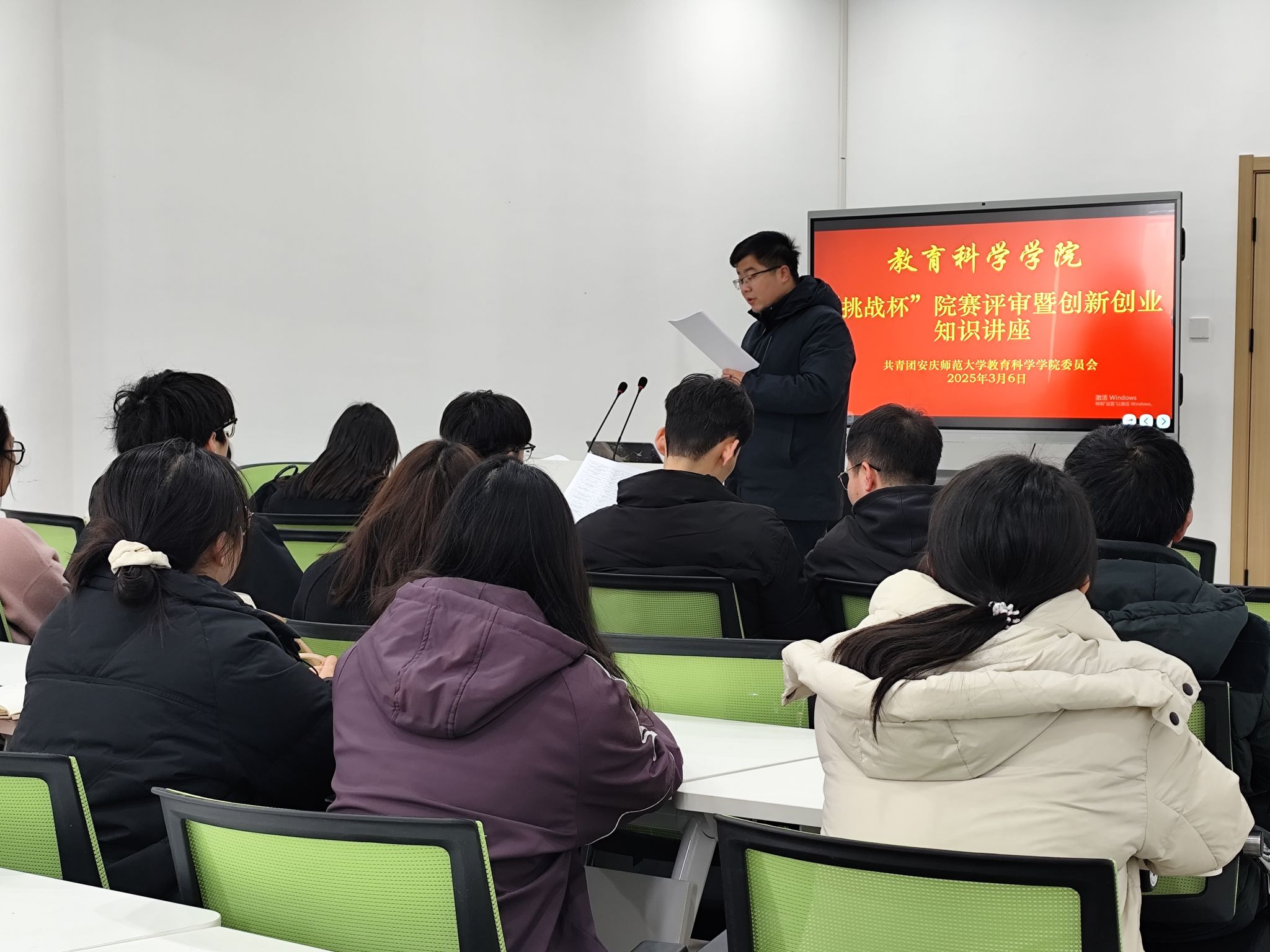 3月6日,教育科学学院在一站式学生社区阶梯教室开展“挑战杯”院赛评审暨创新创业知识讲座,由校团委副书记严峻主讲,学院团委副书记主持,指导教师、辅导员及百名学生观摩学习。