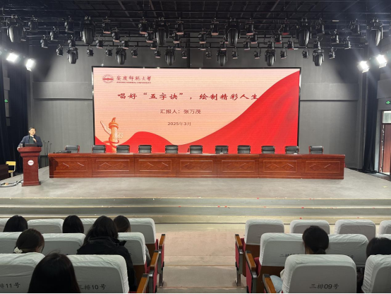 构思框架、斟酌内容、反复修改……早在两周前,张万茂便开始为报告做精心准备。“希望‘五字诀’能帮助学生们树立正确的人生观和价值观,为他们的精彩人生绘制出更加明确的蓝图。”张万茂坦言,作为传媒学院的一名专职辅导员,他深知学生们正处于人生的重要阶段,面临着诸多选择和挑战,需要明确的人生方向和坚定的信念来指引他们前行。