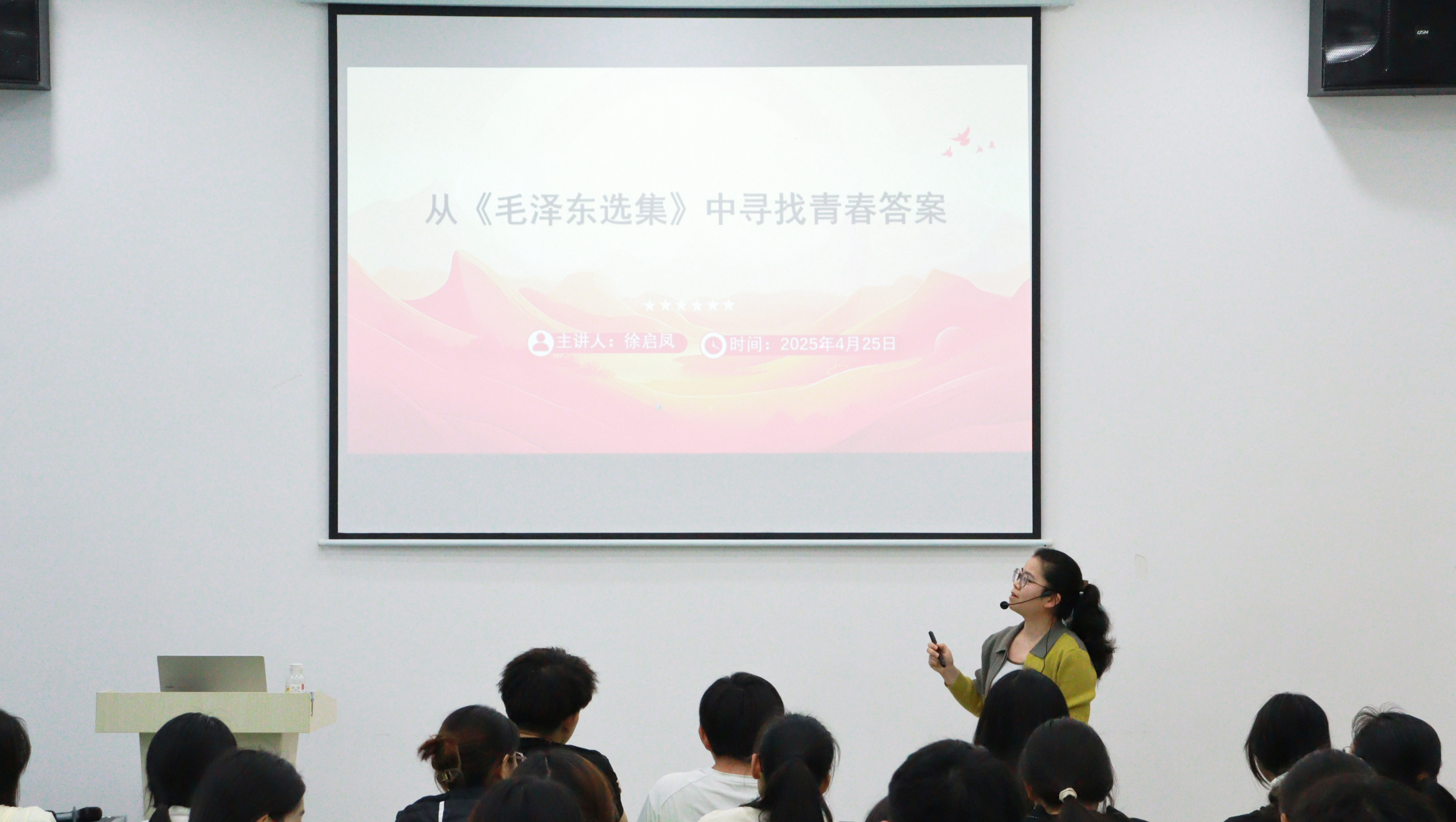 课堂上,徐启凤对《毛泽东选集》进行了全面而细致的介绍。徐启凤结合《矛盾论》强调,矛盾是人生发展的必然趋势,大学生在学业、情感,生活等方面的困惑,本质是成长过程中对立统一规律的体现。这些矛盾并非阻碍,而是推动自我认知升级的契机。正确的看待矛盾,抓住核心一举破局,才能将矛盾顺利化解,成为成长路上的动力。