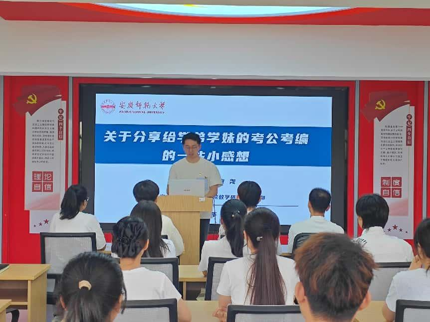 会上,支部优秀党员张子蝶和章尧两位同志传经送宝,分别介绍了他们升学和就业的备考策略,从公务员考试的“岗位选择、笔试技巧、面试心态”到博士招考的“学术积淀、科研规划、院校适配”,全方位分享升学和就业路径。