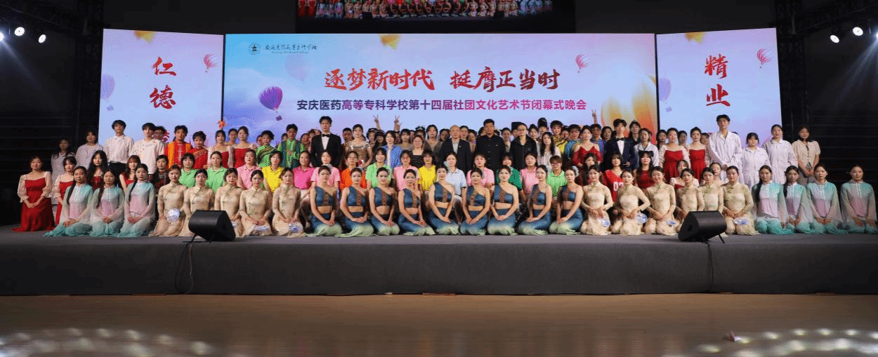 青春似火,绽放绚烂光芒;梦想如诗,谱写华丽篇章。2025年5月23日晚,安庆医药高等专科学校“逐梦新时代,挺膺正当时”第十四届社团文化艺术节闭幕式晚会在体育馆二楼精彩上演,校党委委员、组织部部长、组织人事处处长曹怀出席活动,现场千余人齐聚一堂,晚会同步线上直播,全校师生共赴这场视听盛宴。