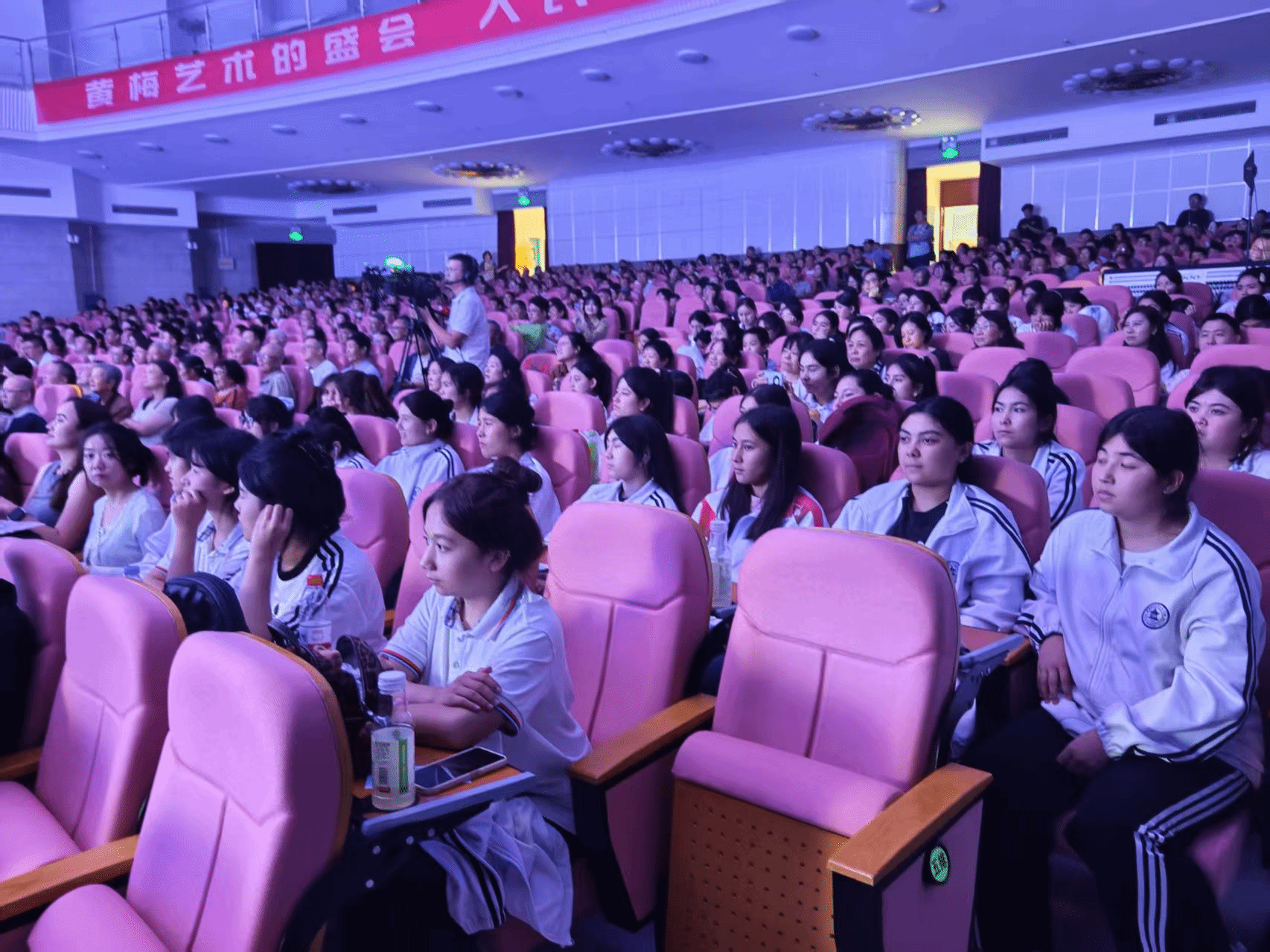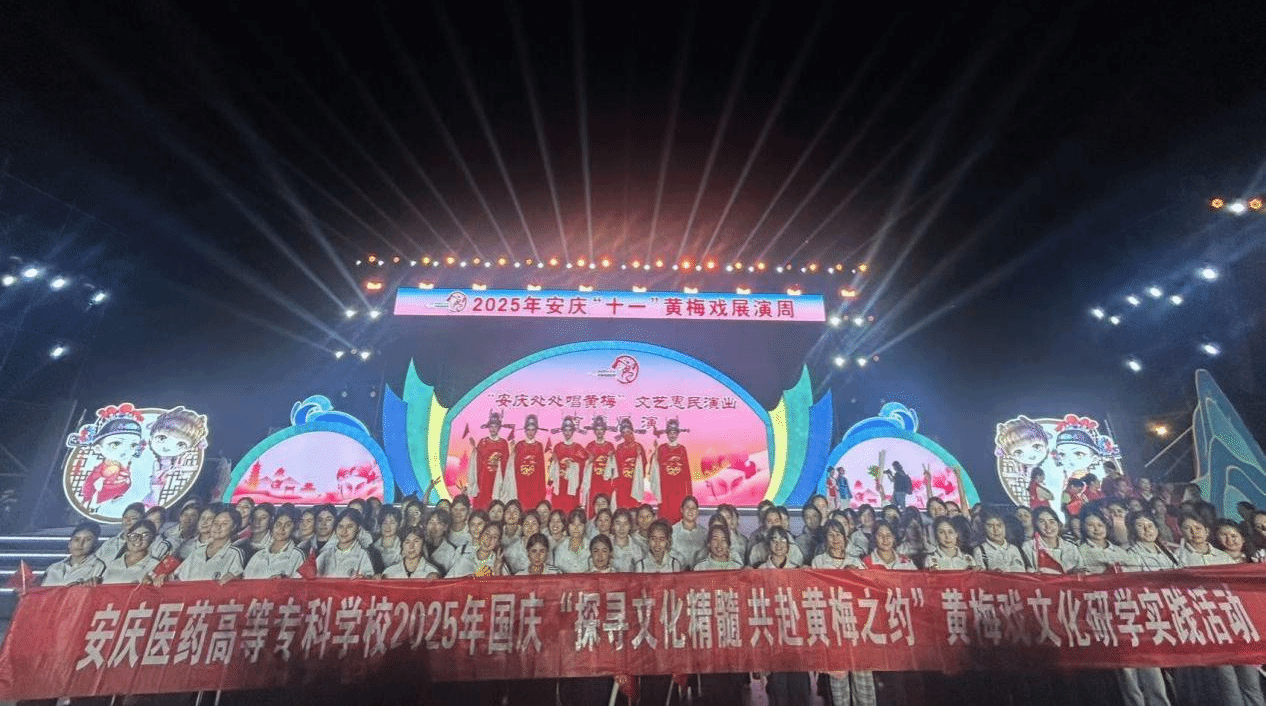 当晚,同学们赴安庆市文化馆参与了2025年国庆“安庆处处唱黄梅”艺术节系列晚会的首场演出。由阿亚库孜·赛尔江、阿依妮尕尔·麦麦等六名新疆籍学生带来的黄梅戏《女驸马》选段“谁料黄榜中状元”,以字正腔圆的安庆方言唱腔与灵动鲜活的肢体语言,生动再现了黄梅戏经典的民俗风情,赢得全场热烈掌声。