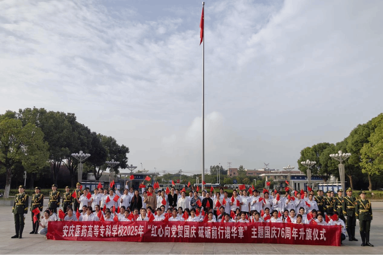 10月1日清晨,安庆医药高等专科学校在校至善广场举行国庆升旗仪式。在雄壮的国歌声中,同学们的爱国热情与民族自豪感油然而生。学生加依娜尔·赛力克激动地说:“当国歌响起时,我仿佛看到了家乡与祖国同发展的壮丽图景。”