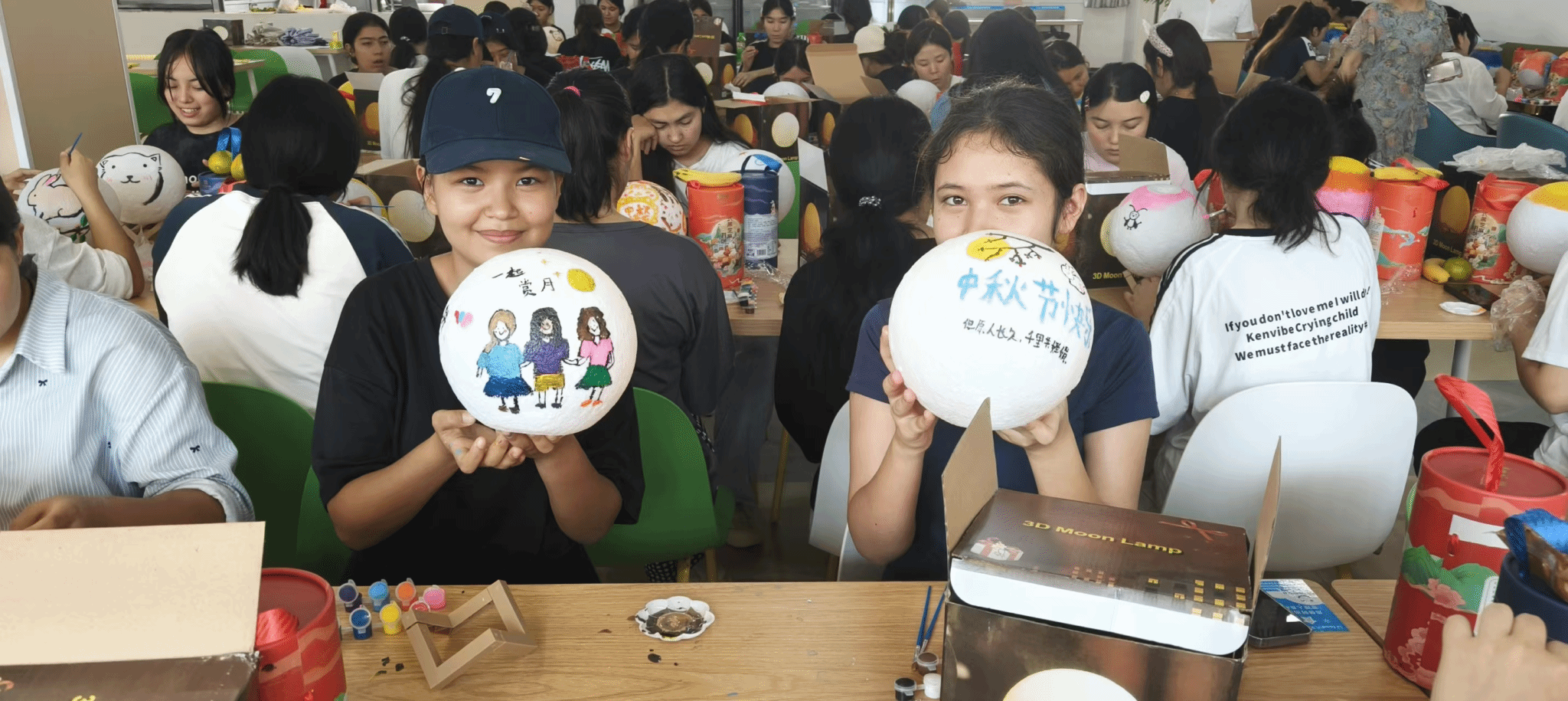 10月6日的“明月寄相思 巧手绘中秋”月球灯活动中,校党委委员、党政办主任陈琪亲临现场与同学们互动,并送上节日月饼,食堂精心准备的水果拼盘更添温馨氛围。二楼食堂化身“月光工坊”,同学们在素白的月球灯上挥洒创意,有的用白色颜料勾勒出月兔的轮廓,有的画出了风吹草地遍牛羊的家乡美景,还有的写下了“中秋快乐”等字样。活动通过“以艺传情、以情聚心”,让传统文化技艺成为连接皖疆学子的纽带,更在笔墨灯影间厚植了“家国共团圆”的深厚情感。