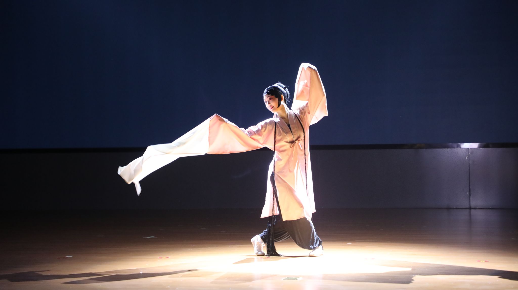 作为越剧诗意美学的巅峰之作,《葬花》让不少师生深刻体会到传统戏曲独特的抒情张力。演员以婉转细腻的唱腔,搭配荷锄葬花的身段表演给观众留下了深刻的印象。此外,还有师生耳熟能详的《孔雀东南飞》、《窦娥冤》等曲目一一上演,课本中的知识在越剧中再次重现,却有着新的视觉感受。《道观情缘・偷诗》等曲目则充满诗意与情趣,轻松活泼的剧情让师生们沉醉其中、笑意连连。演出尾声,特色技艺《水袖表演》则瞬间将现场气氛推向最高潮,水袖舞动间“翩若惊鸿、婉若游龙”的灵动之美展现得淋漓尽致,赢得满堂喝彩。整场演出期间,百花亭报告厅座无虚席,氛围热烈。师生们全神贯注,目光紧紧追随舞台,时而为剧情的跌宕起伏屏息凝神,时而为演员的精湛技艺热烈鼓掌,传统艺术与青年学子之间形成了强烈的情感共鸣,现场掌声与赞叹声此起彼伏。