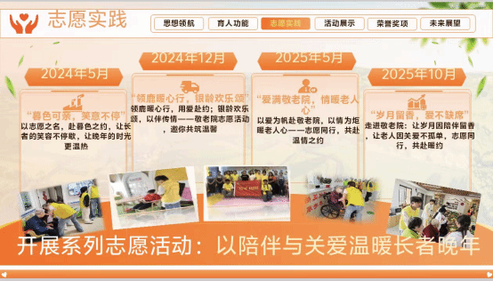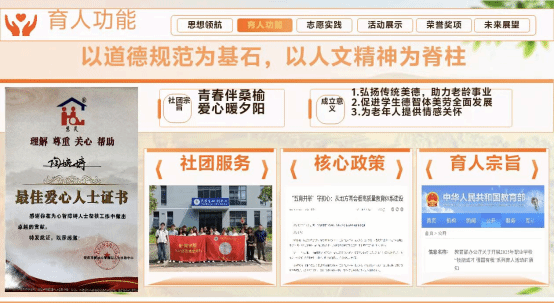 敬老学社以弘扬中华民族尊老、敬老、爱老、助老的传统美德为核心宗旨。社团定期组织志愿者前往合作的养老机构陪伴老人,缓解老人孤独感,同时举办新型养老产品设计大赛,助力老人融入科技生活,用实际行动诠释“奉献、友爱、互助、进步”的志愿精神,凭借常态化的公益实践、突出的社会价值,获评志愿公益类活力社团。(校学生社团管理服务中心)