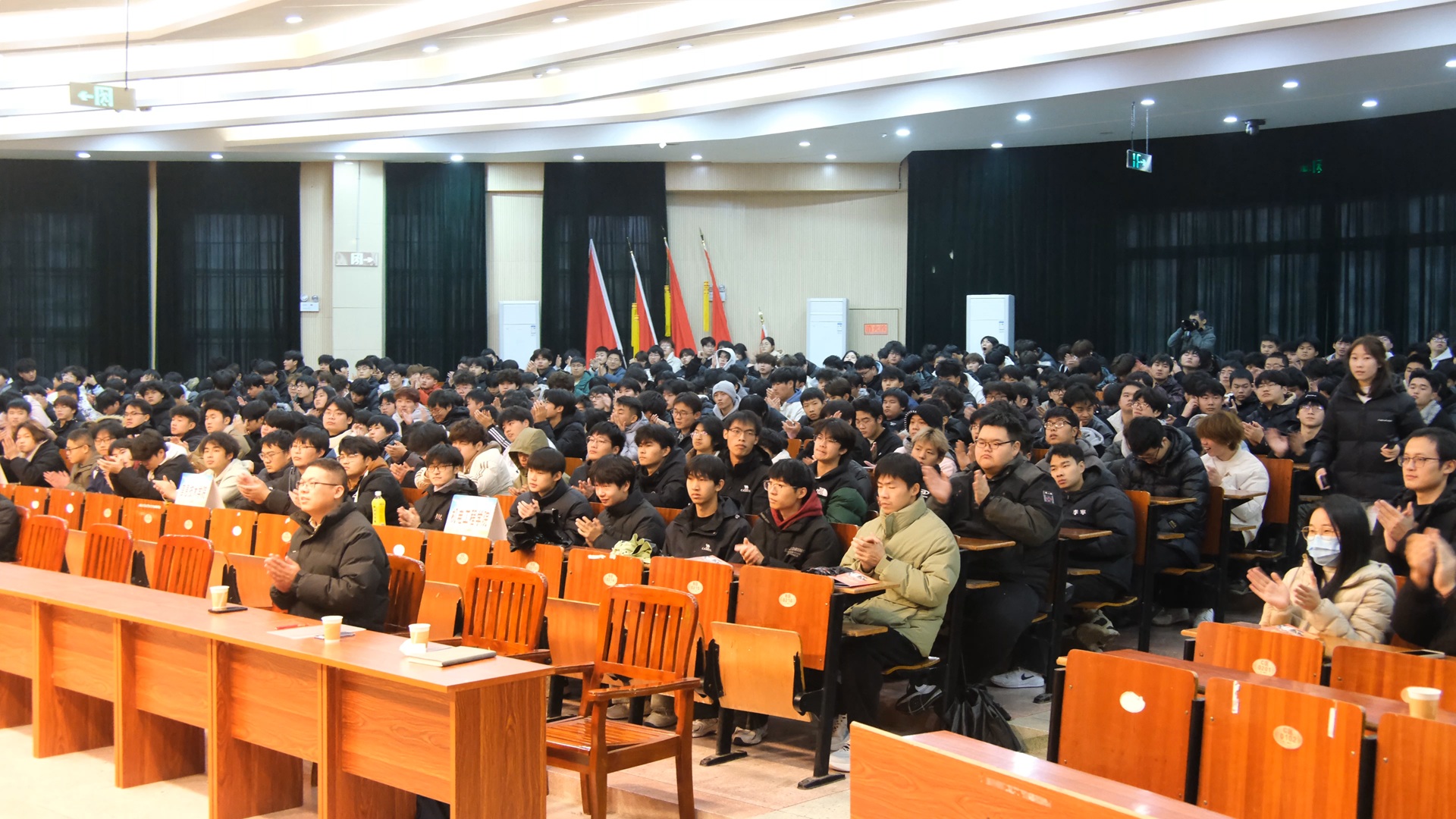 下午四时,活动进入第二阶段,可容纳500人的报告厅座无虚席。