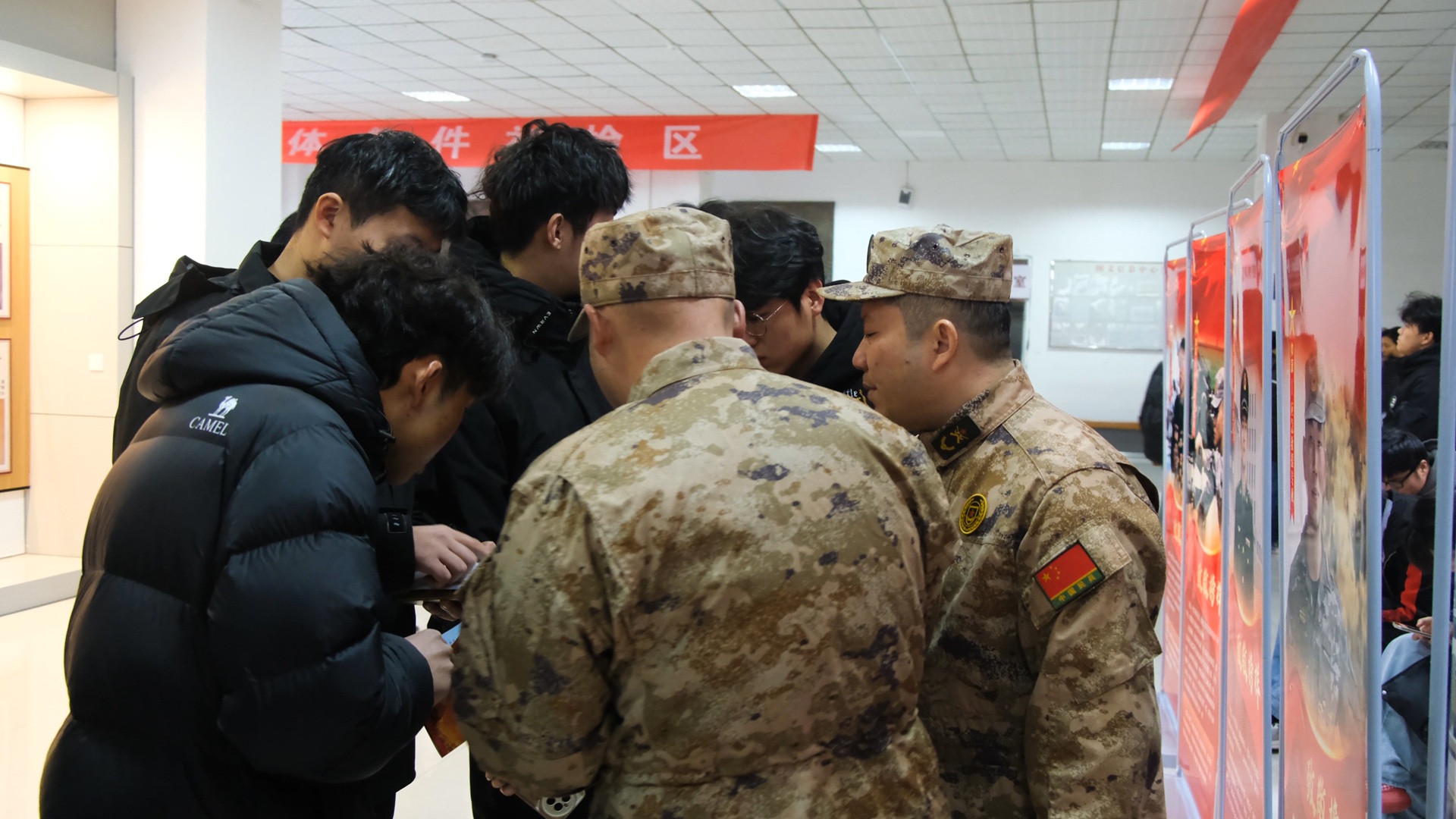 一场冬雨虽让深冬校园的寒意更浓,但校园却涌动着炽热的强军爱国热潮。12月24日下午,我校在图文信息中心一楼举行了一场别开生面、内容丰富的“国防教育进校园”主题教育,为全校师生带来了一场触及心灵、激励行动的国防教育盛宴。校园内迅速掀起了一股“关心国防、热爱国防、建设国防”的浪潮。