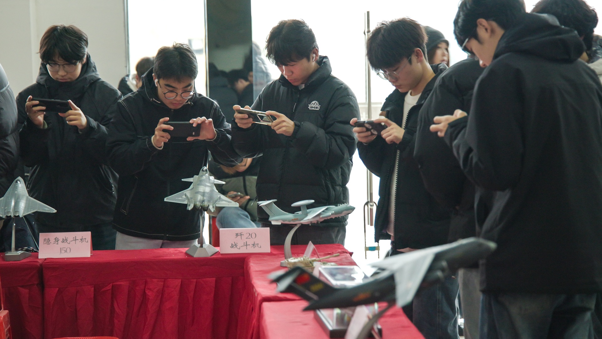 武器装备观摩区陈列着25种现代化装备模型,从单兵作战装备到信息化作战系统,较好地展现了我国国防科技的巨大进步。参加观摩的同学们仔细聆听志愿者的讲解,认真观察每一处细节,眼中充满好奇和自豪。