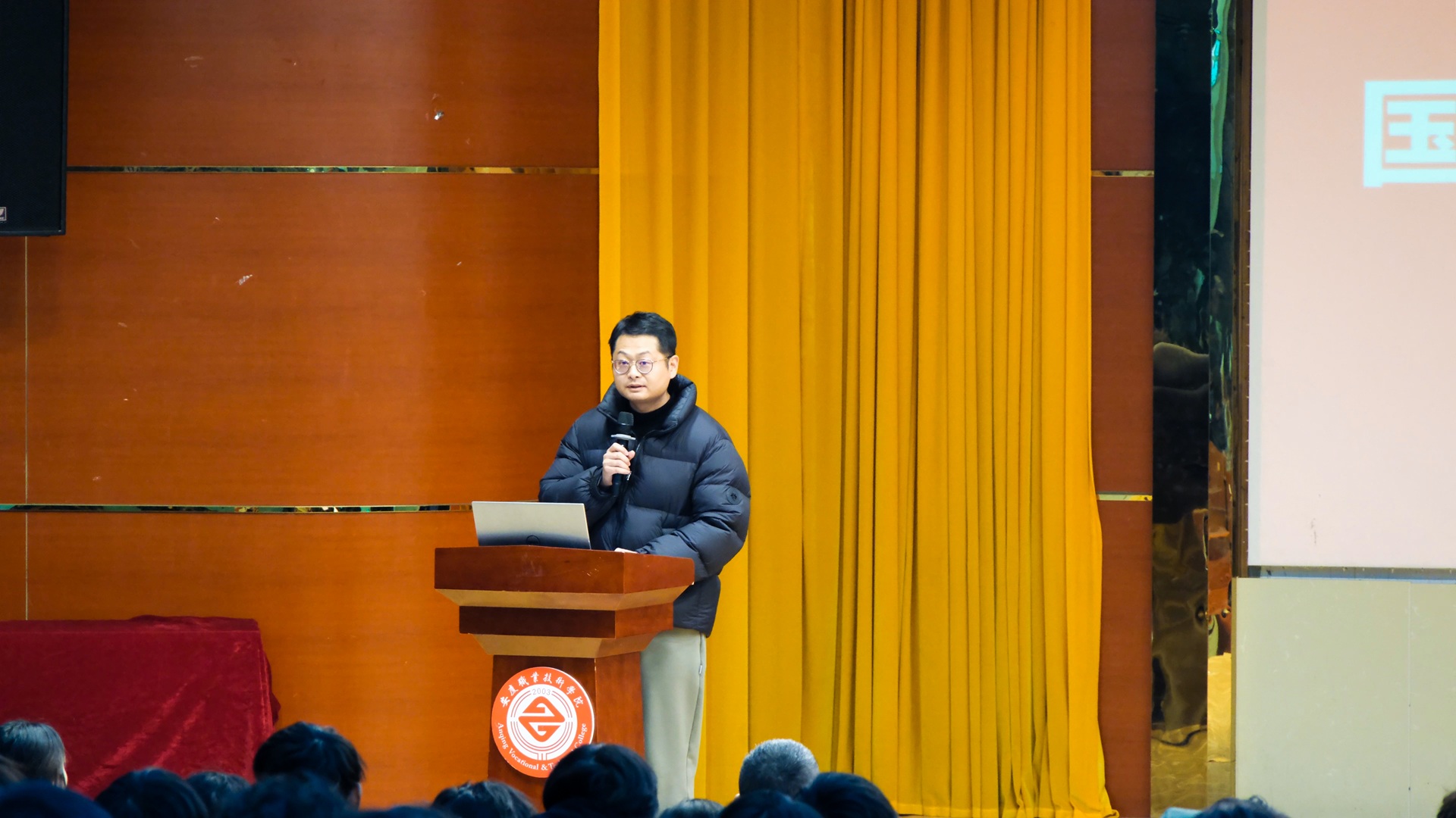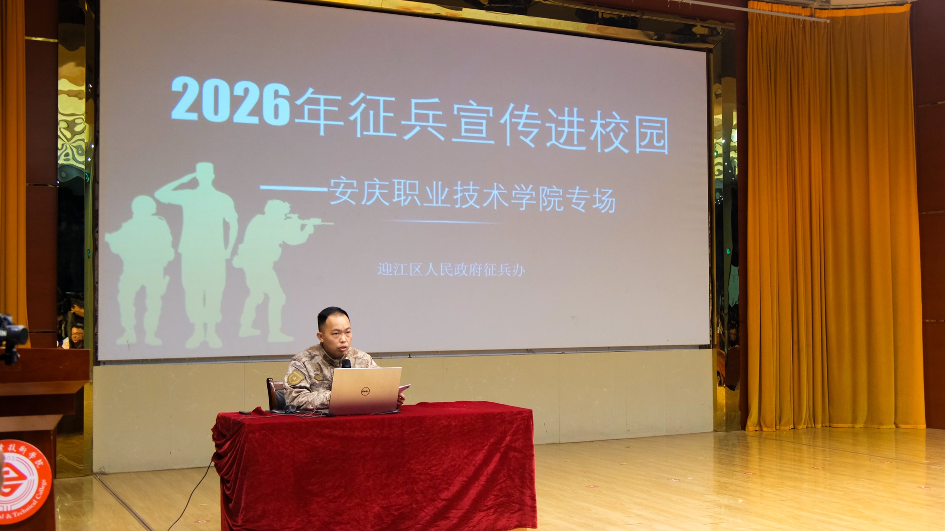 首先登台的是安庆市征兵形象大使、优秀退伍军人韩强。他结合自身经历,以生动事例阐述了国防与个人和国家命运的紧密联系,极具感染力的演讲深化了师生对国防建设的理解。