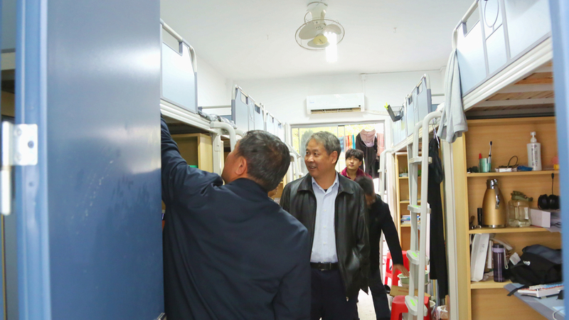 检查中校领导还与同学们亲切交谈,认真倾听学生们对当前住宿环境的意见与建议。校领导们还叮嘱同学们自觉遵守宿舍管理规定、提升安全防范意识。