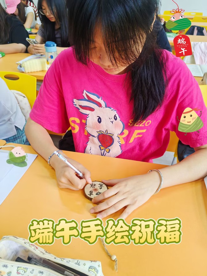 一笔一画,皆是端午情长。24级团支书翁瑾向同学们讲解了古代民间端午节互相赠送扇子的习俗,寓意“一扇解千愁”,让同学们了解更多的端午历史底蕴和文化内涵。随后,同学们学习了绘扇的操作方法,将自己对传统文化的感悟付诸笔端,在一柄柄典雅古朴的团扇上,用清新亮丽的色彩用心绘制外院学子对传统文化、中华瑰宝的热爱。经过上色的彩扇样式精美,充满古色风韵,让同学们爱不释手。制作结束后,大家向同伴分享各自的作品并合影留念。