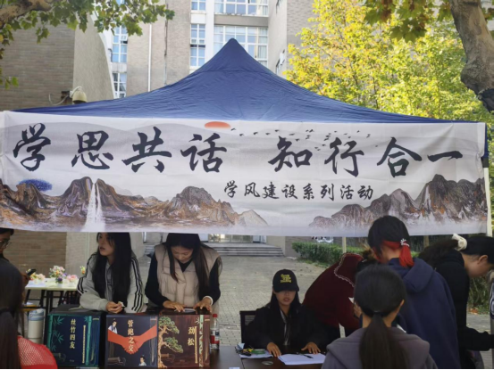 在深度互动环节,文创物品被精心汇集,形成了充满温度的“学风寄语墙”。同学们围绕在展示区周围,分享学习经验、互赠成长祝福。这一过程打破了传统交流的界限,使“学思结合、知行统一”的理念不再是抽象的口号,而是转化为可感知、可传递的情感连接。现场欢声笑语与纸笔摩擦的细微声响相互交织,互动氛围持续升温,生动实现了“学有所思、思有所悟、悟有所行”的育人实效。