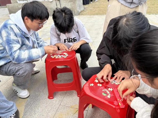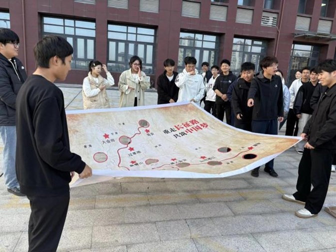 “长征精神永远在路上!”11月12日下午,在理工楼前广场一场别开生面的主题团课精彩上演。数理学院团委创新推出“传承红色基因·践行忠诚团结”沉浸式团课,用“拼图+画布+抢答”三维联动,把万里山河“搬”进课堂,让青年学子在“玩”中学、在学中悟,完成一次跨越时空的精神拉练。