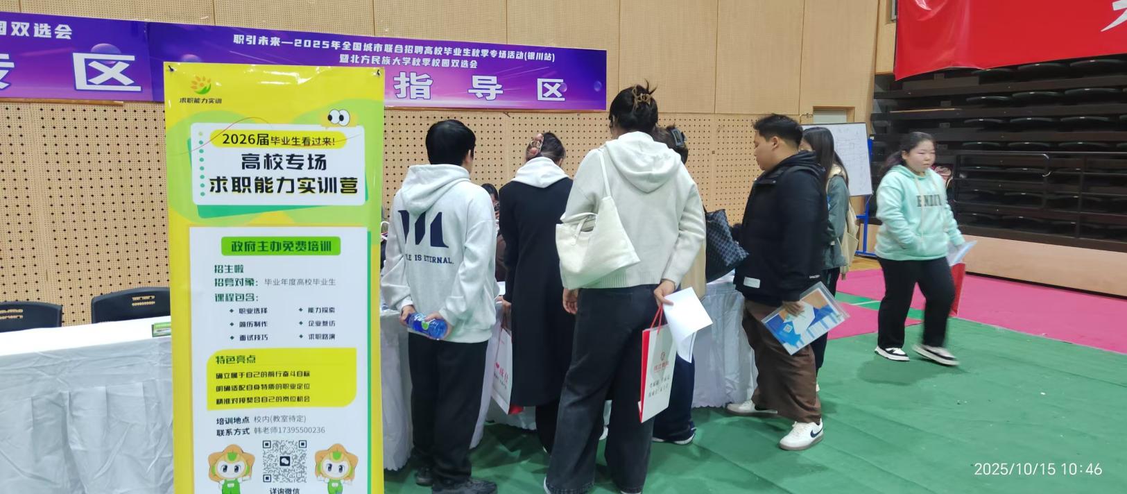 【本网讯】10月15日,2025年全国城市联合招聘高校毕业生秋季专场活动(银川站)暨北方民族大学秋季校园双选会在学校体育馆圆满落幕。本次招聘会紧扣国家“稳就业、保就业”决策部署,吸引区内外260家优质企业参会,现场组织有序、氛围热烈。