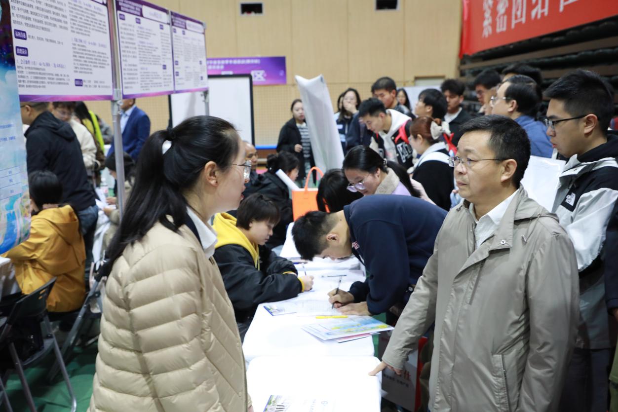 校党委书记李俊杰深入会场,与参展企业招聘人员和应聘毕业生细致交流,了解企业用人需求、简历收取情况和对招聘工作的意见建议等,了解毕业生就业意向、应聘情况等。