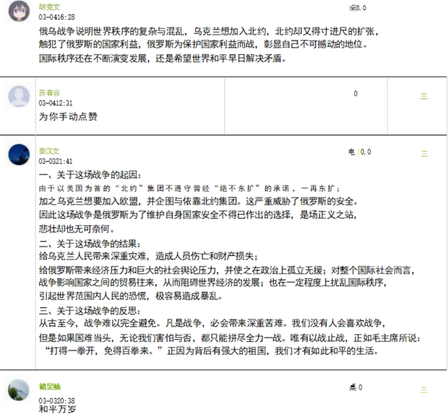 3.24-25-2学期初线上发布的关于俄乌冲突的主题讨论部分摘录