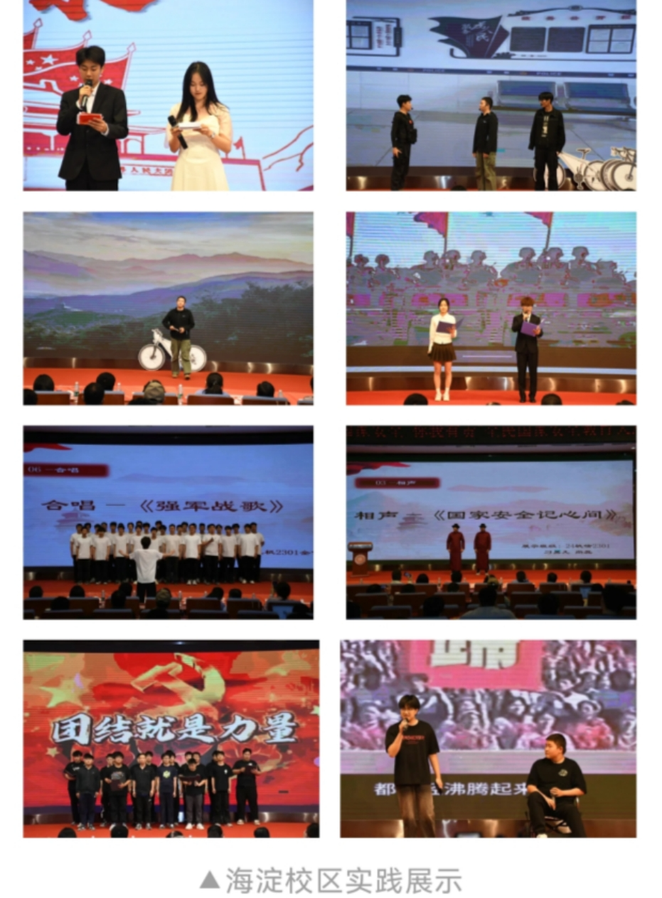 军迷俱乐部、学生军训团、国旗班三大国防类学生社团已连续三年成功组织“4.15全民国家安全教育”大思政课,2024年开始,为了扩大活动规模,增强活动效果,尝试线下活动同时线上直播,线上线下观众覆盖到四校区一千余名学生,受到学校领导及全体师生高度好评。与此同时,课程内容既包括社团学生的现场展示,也有之前拍摄好的微电影、微短剧等数字化作品在现场展播。活动方式通过专家理论讲授+学生实践展演的方式进行,专家讲授针对青年大学生特点,通过国家安全典型案例(如反间谍斗争、科技安全案例)、网络谣言、境外势力渗透等案例,传授识别和应对安全风险的方法,抵制错误思潮;学生实践展演则通过小品、戏剧、朗诵、唱歌绘画等方式,围绕国家安全的重点领域如信息安全、文化安全、科技安全等表达自己的思考和实践,不仅是知识的传授,更是价值观的塑造。它帮助大学生在百年变局中站稳政治立场,增强忧患意识,成为国家安全坚定的捍卫者、践行者和传播者,为中华民族伟大复兴提供坚实的安全保障。