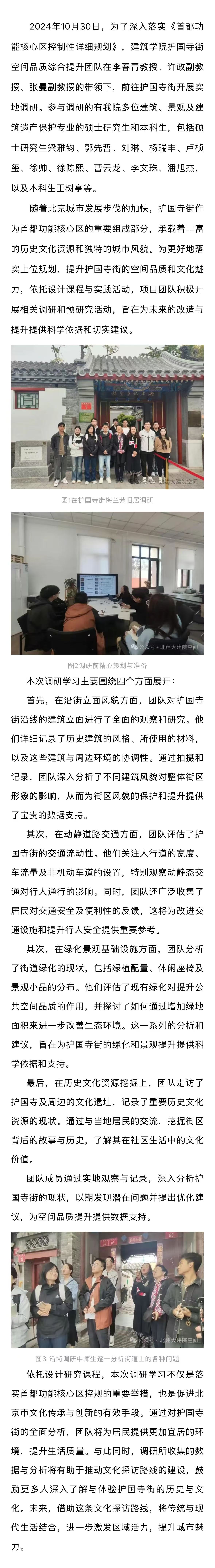 心系首都建设,助力老城更新——建筑学院师生开展护国寺街空间品质提升项目调研