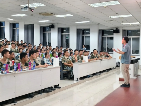 陈浩、耿宝群、刘洋、方浩然等一行慰问军训同学,勉励大家在后续训练中锤炼坚韧意志、培养团队协作精神,并在人生新阶段中寻找热爱、提升独立解决问题能力。各学院领导也分别介绍学院特色并送上鼓励。