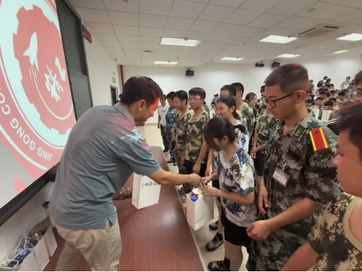为深入了解书院军训开展情况,增强2025级新生参加军事训练的积极性,9月4日傍晚,精工书院副院长陈浩,机电学院团委书记耿宝群,机械与车辆学院学生工作办公室副主任刘洋,空天科学与技术学院辅导员方浩然以及精工书院辅导员、连队指导员来到军训连队慰问会现场,慰问新生。