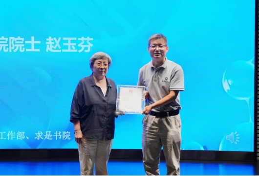 讲座开场前,张加涛为赵玉芬院士颁发 “百家大讲堂” 纪念证书。