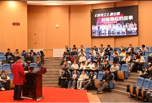 讲座尾声,张导演深刻剖析了《徐特立》舞台剧创作背后的红色历史内核与艺术突破点,通过生动案例,让同学们直观感受到红色基因与现代舞台艺术表达的紧密呼应。