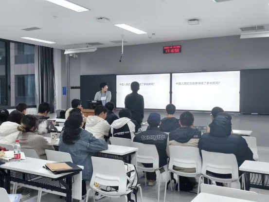 活动在两部精心挑选的视频中拉开序幕。从展现国家发展历程的宏伟画卷,到纪念抗战胜利80周年的烽火记忆,短短十分钟,光影交错间,革命先辈的奋斗与担当深深烙印在每位同学心中。也为下一个抢答环节埋下伏笔。