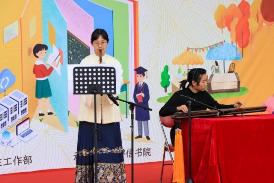 开幕式由民乐团一曲《阳关三叠》开场,乐曲刚柔并济、意蕴绵长。随后睿信书院2024级本科生游奕佳携古典舞《媚》缓步登台,水袖翻飞处,尽显古典雅韵与青春灵动。