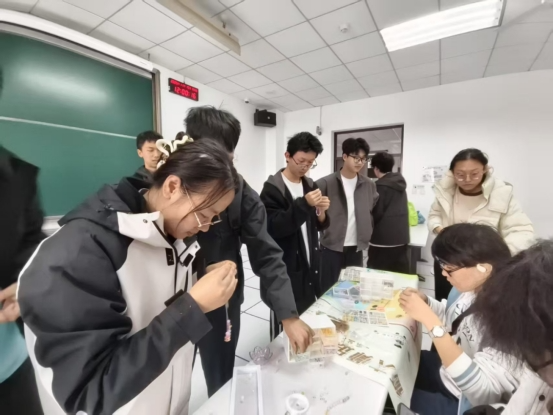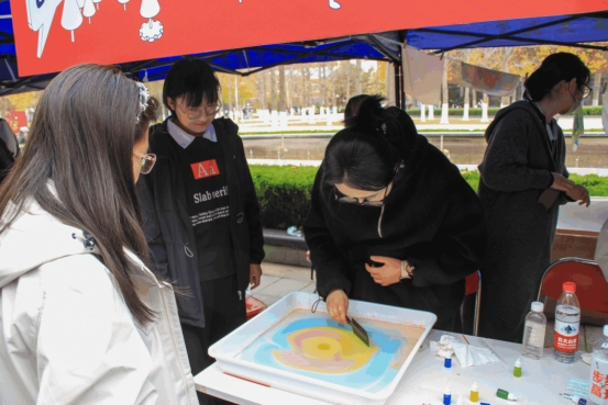 文化节期间,各书院特色活动兼具传统韵味与创新趣味,亮点纷呈:精工书院带来非遗水拓画与火漆印章书签体验,水拓画以水为媒,颜料勾勒流动纹理,丝巾吸附固色成独特色纹样;火漆书签搭配干花贴纸,滴蜡盖章解锁专属阅读配饰,尽显传统手作巧思。睿信书院推出“秋日重构、气语含秋、咖啡问答”活动,拼图复刻秋日意境、气球DIY留存时光,答题解锁手冲咖啡技艺,在趣味互动中感受生活里的传统雅趣。求是书院打造“求小柿Ai”暖心互动与“枣核炫舞”传统游戏,求小柿Ai倾听烦恼传递温情,竹棒玩转枣核复刻古时童趣,让传统娱乐焕发新活力。明德书院开展“六艺”系列传统文化体验,“古算闯关”挑战传统数学谜题,“纹样拓印”留存经典纹饰,“智探古礼问答”深化传统礼仪认知,沉浸式感受中华文脉。特立书院以科创赋能传统,大创双选会带来创新经验,未来精工技术班用人工智能赋能风景画展览讲解,让科技与传统艺术碰撞出别样火花,拓宽文化体验维度。北京书院举办“拼字闯关”趣味活动,同学们限时组合汉字卡牌,在比拼思维反应的同时,沉浸式感受汉字文化的独特魅力与传承力量。令闻书院设置特色文化体验区,多国美食与趣味互动相映成趣,拉茶、肉骨茶等风味品尝与文化交流并行,在多元交融中传递传统饮食文化的包容之美。