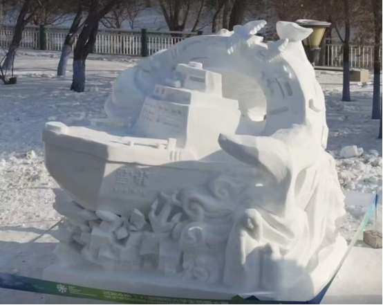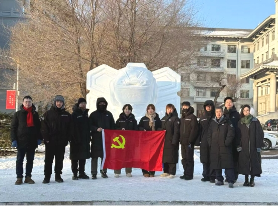 雪雕队始终坚持党建引领,将“凝心聚力”精神融入每一个创作环节。成立临时党支部,党员骨干带队前往多地开展冰雪文化调研和红色研学;数十次推演与艺术研讨,只为让“报国底色”与“人文温度”在设计中达到完美平衡;党支部以“主题党日+创作攻坚”模式引领党员先锋带头攻坚,将红色文化融入作品的艺术表达。