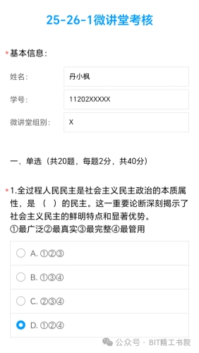 考场检验学习成果。为保证入党积极分子的政治素养和理论水平达到培养要求,书院于2025年11月26日组织全体入党积极分子开展理论考核。本次理论考核共收回答卷133份,理论考核总体合格率为75%。理论考核作为入党积极分子培养体系下的重要评价指标之一,将理论学习、实践培训的收获落在答卷上,为促进入党积极分子不断提高理论素养和实践本领提质增效。