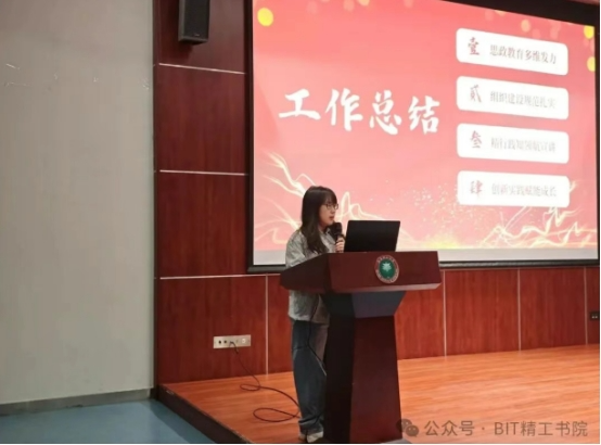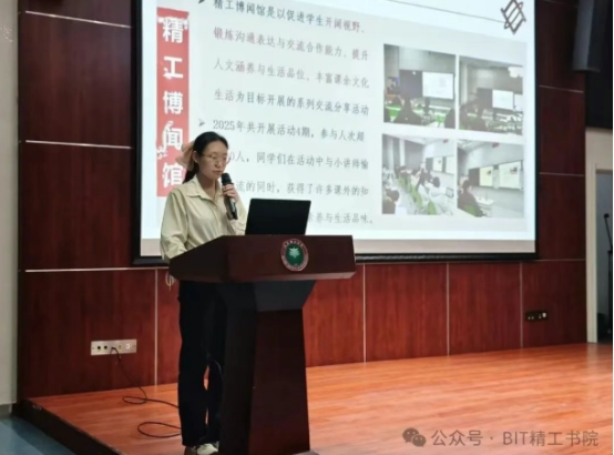 学生自管会会长黄桂佳同学用详细的数据,展示了社区使用、素养计划等书院事务情况;总结了红色阅读周、精工杂货铺、社区文化节、兰室计划等活动,展现自管会在丰富学子生活,营造良好社区氛围的工作成效。