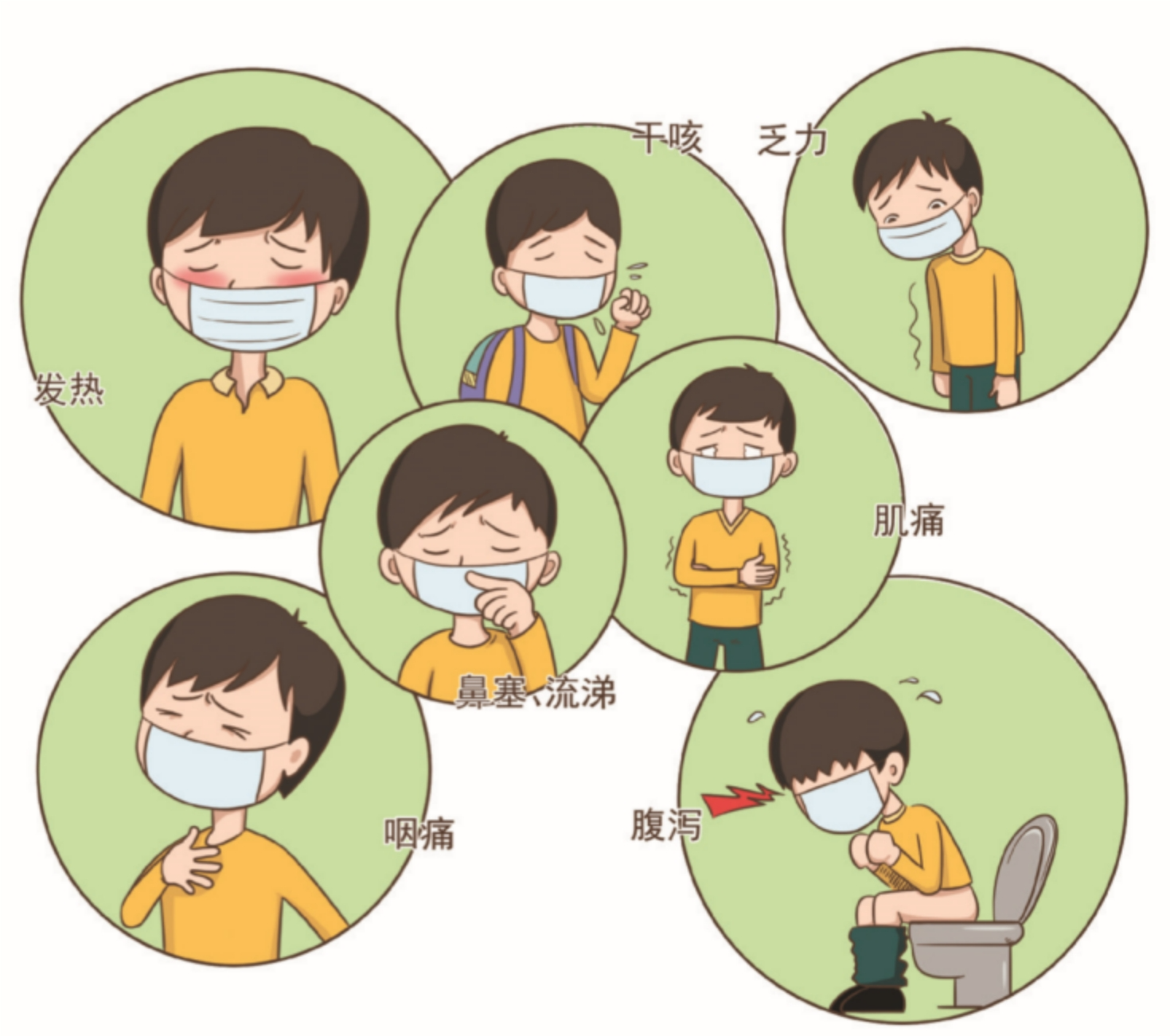 新型冠状病毒主要经呼吸道飞沫和密切接触传播。常见症状主要为发热、咽干、咽痛、咳嗽等,部分患者可伴有肌肉酸痛、嗅觉味觉减退或丧失、鼻塞、流涕、腹泻、结膜炎等。