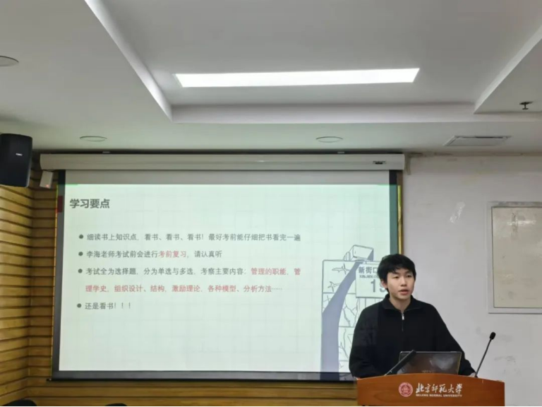 2024年12月16日星期一晚18:00,工商管理班期末导航活动在京师大厦9406顺利举办。23级徐子轩、樊华烨两位同学先后进行经验分享。